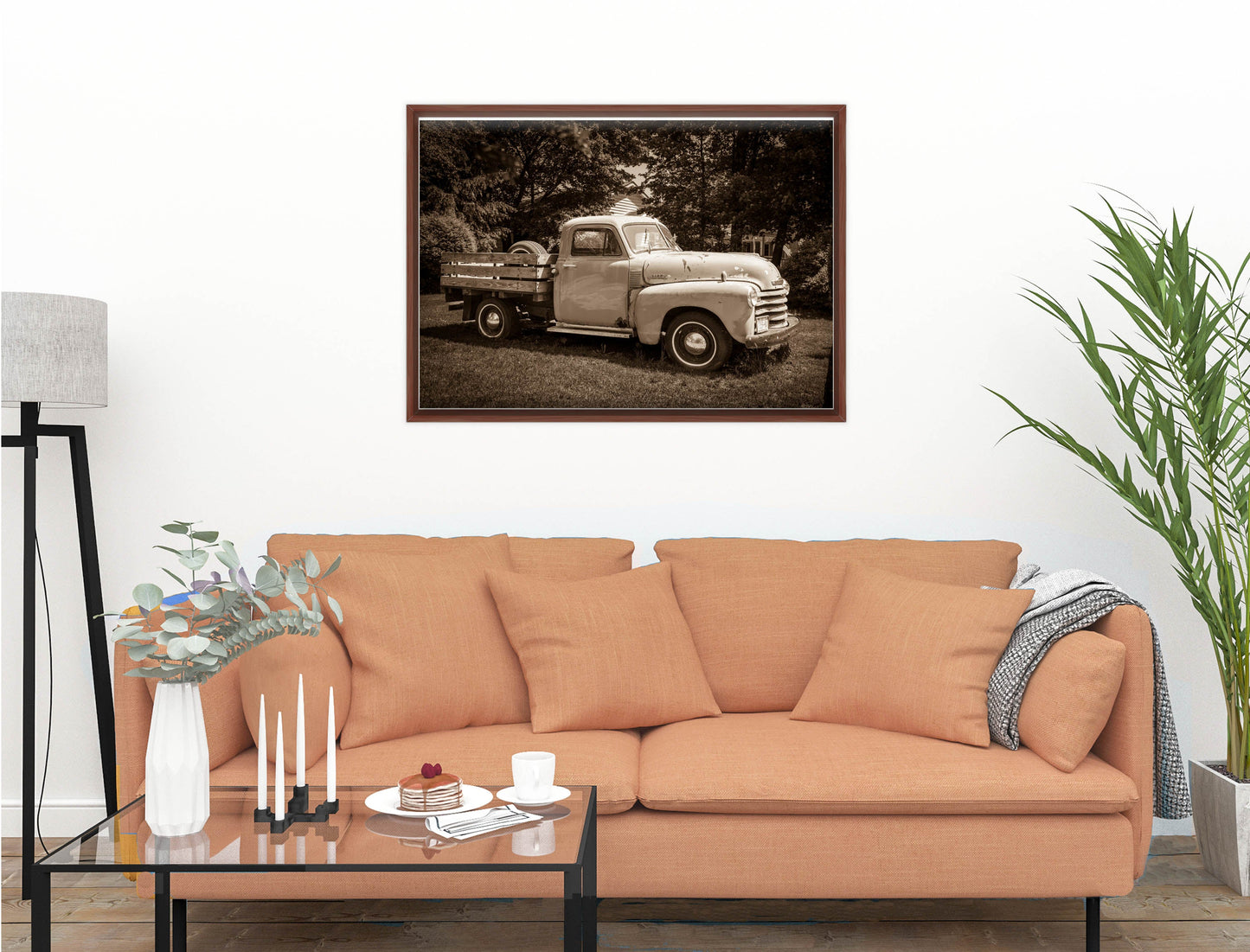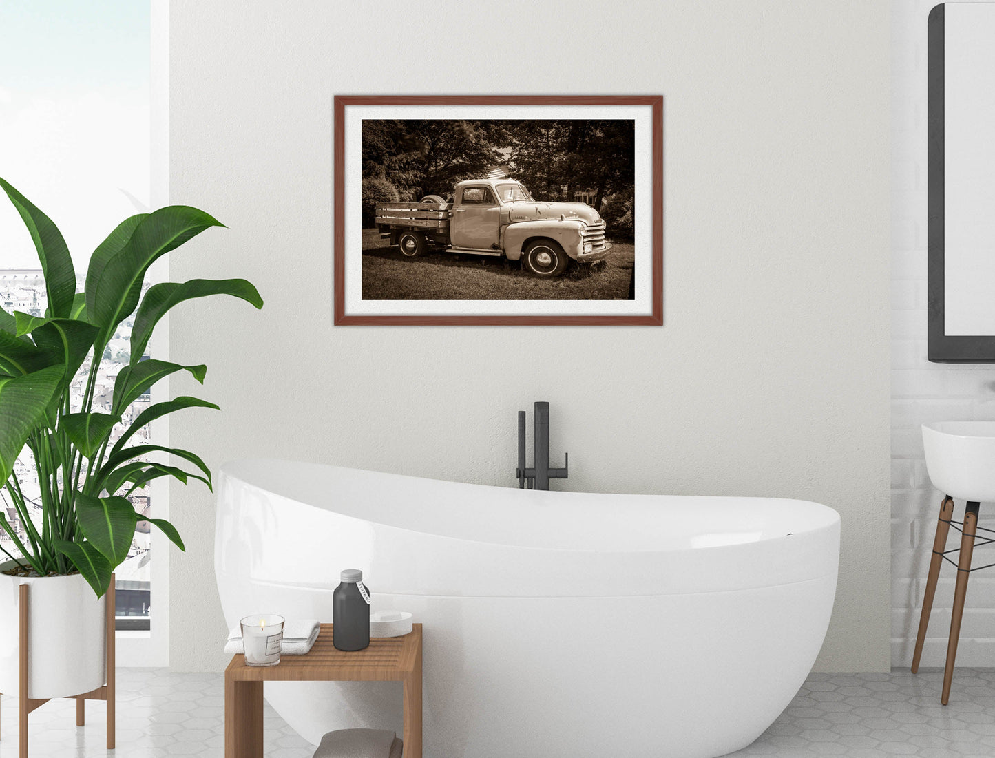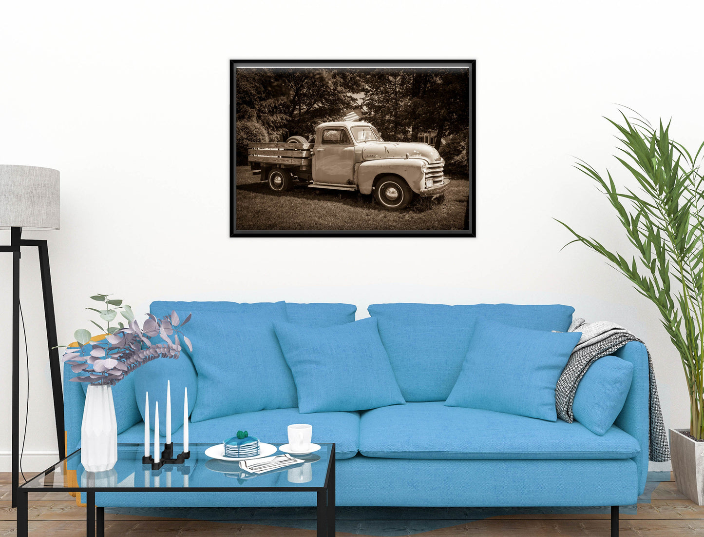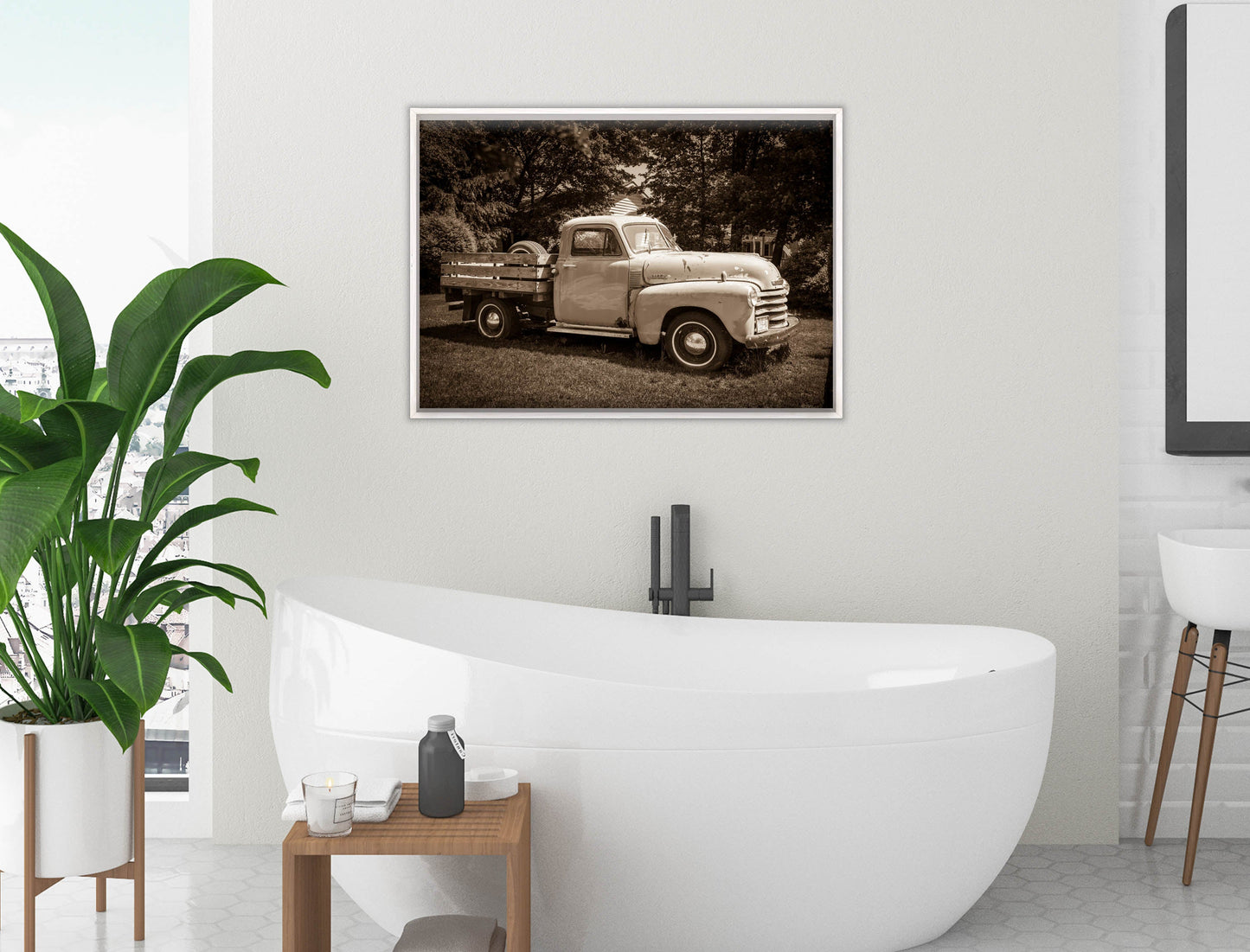 Take a journey through time with our Vintage Pickup Truck photograph by famed photographer, Ray Huffman. The sepia tone adds a touch of nostalgia, making it perfect for any room. Available in canvas wrap or framed, it's a unique piece of fine art that will inspire and delight. About the truck: The 3100 Chevrolet pickup truck, manufactured from 1947 to 1955, is celebrated for its iconic rounded design and cultural significance. It offered reliable performance with engine options including a 216 and 235-cubic-inch inline-six. Available in various body styles, it served diverse purposes from farm work to urban commuting. Its enduring appeal has made it popular for restoration and customization, fetching high prices among collectors as a symbol of American automotive history.